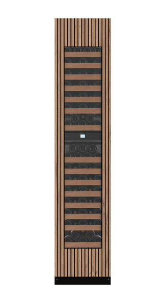 Avec une capacité d’environ 87 bouteilles standard, la cave est équipée de 15 étagères en bois coulissantes (sapelli) conçues pour réduire les vibrations et offrir un stockage sûr et organisé. Deux de ces étagères peuvent être converties en étagères d’exposition pliables pour mettre en valeur certaines bouteilles selon vos besoins.